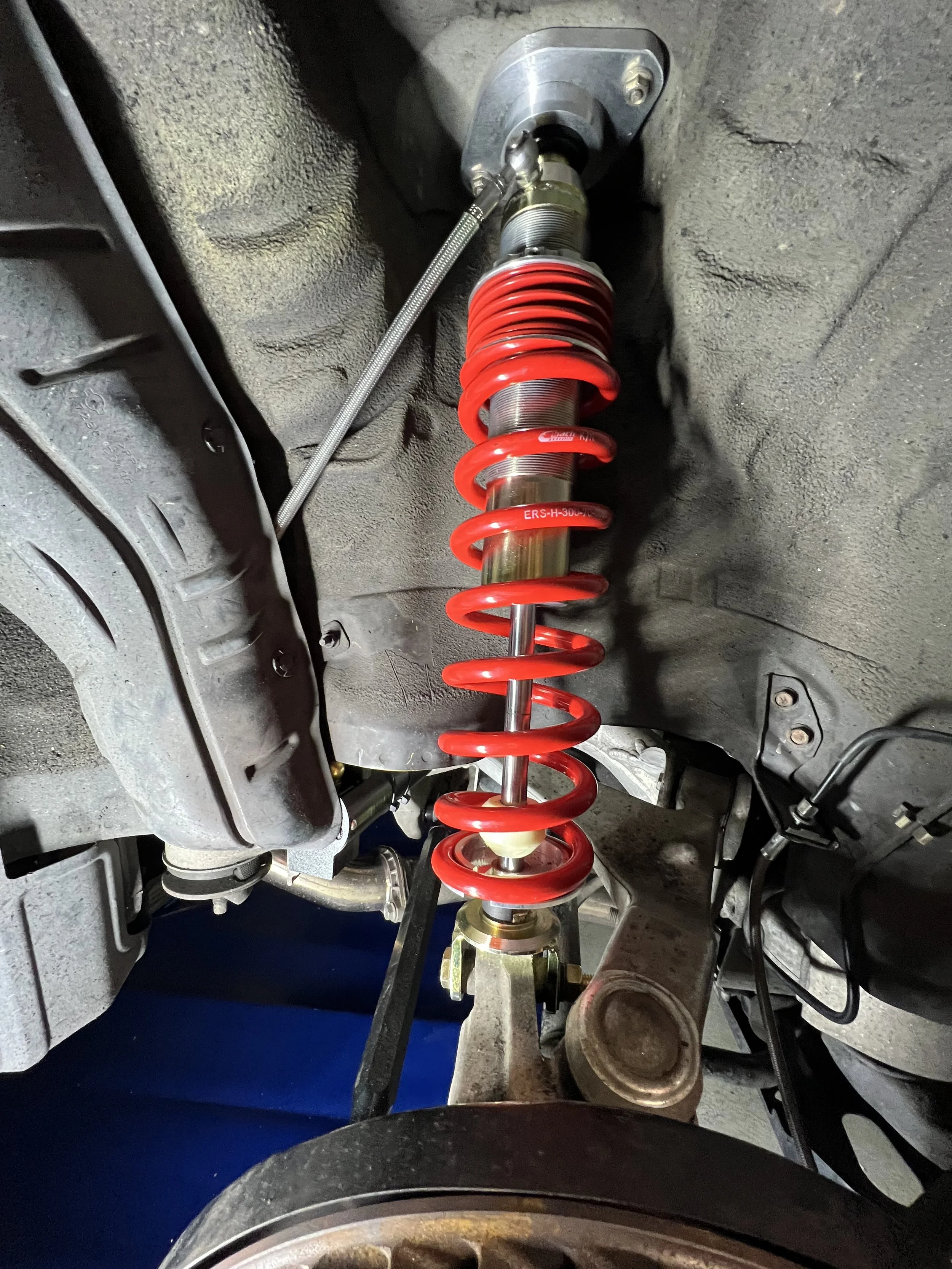 So enter the first upgrade, coilovers with race springs and street/race shocks with better adjustability. In this iteration the car handled better, allowed a better setup and was ultimately faster. But it still wasn't great. Limited droop meant the tyres left the road over larger undulations and limited compression gave the bump stops a real workout. Plus, the shocks still didn't stand up to the harsh rally conditions and still needed replacing every few years or you had to live with an ever worsening ride and handling.